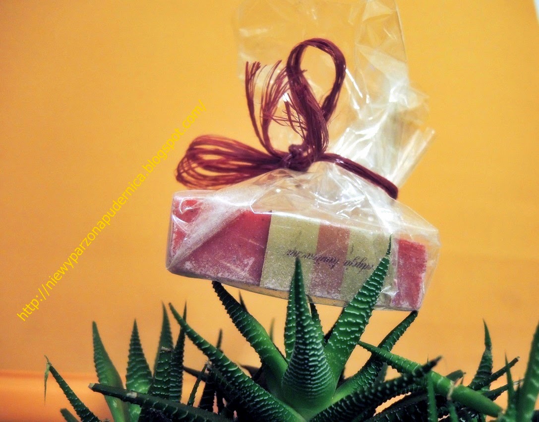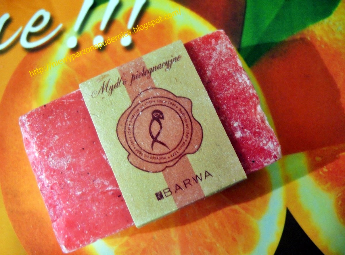 Trafiło do mnie mydło w kostce. Mydło z limitowanej serii od Barwy. I.. tyle o nim wiadomo 😀 Myjaczek zapakowany był tak jak widać- folijka, kokardka, papierowa “opaska”. Żadnych informacji. Mały napis. Prosto i ładnie. Musimy wierzyć na słowo, że mydełko jest naturalne. Sądząc po konsystencji i sprawowaniu kostki- jestem skłonna uwierzyć, że nie ma tam napchanych żadnych świństw. Nie wiem ile może być warte, może jeśli Barwa wprowadzi mydlaki do sprzedaży- dowiemy się więcej.