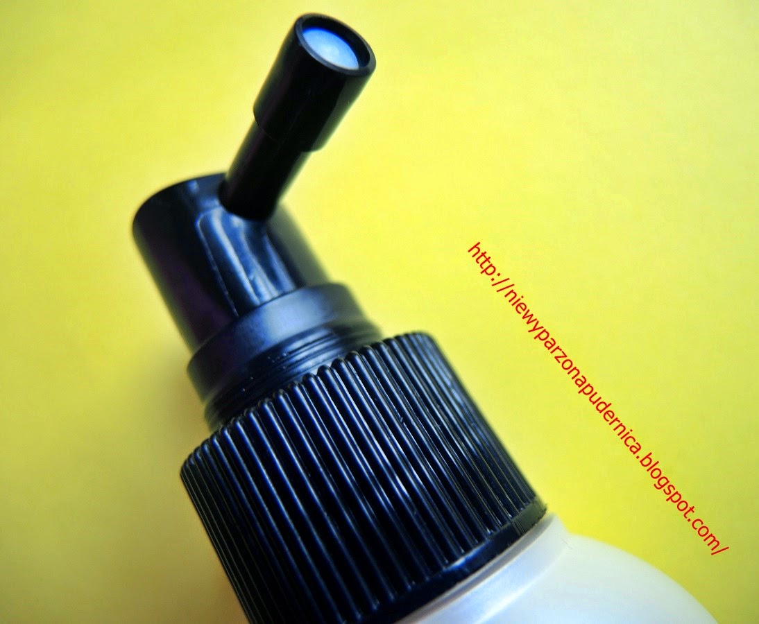 Aplikator z wystającym sutkiem jest świetnym ułatwieniem. Niby taki mały pierdolnik, a taki pomocny. Faktycznie lepiej operować tym suteczkiem, niż zwykłym psiukaczem. Dzięki niemu płyn nie rozpyta się po połowie łazienki, tylko tam gdzie ma się rozpylić. Cena tego sprayu to około 7 złotych! Wydajność…taka normalna, ciężko powiedzieć. Stosuję co drugi dzień i na jakieś 2 miesiące spokojnie wystarcza, a może i na dłużej. To już moje hmmm… 5 opakowanie? Aż dziw bierze, że jeszcze Wam o nim nie pisałam!