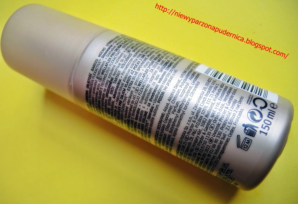 Jak wiecie, albo i nie wiecie, moje włosy są delikatne, lekkie, cienkie i czasami brak im objętości. Na dodatek nienawidzę lepkich pianek, w ogóle żadnych pianek nie lubię. Lakier do włosów mnie wkurwia. Uwielbiam kiedy moje włosy mają swoją naturalną miękkość. Tylko hmmm… lubią się przyczepiać do czaszki na Mona Lisę. Tak, tak Mona Lisa, piękna, tajemnicza postać, ale cholera nie na mojej głowie! Kiedyś trafiłam na fajny sprejuch Wellaflex 2 dniowa objętość i był bardzo spoko. Potem ni z tego ni z owego zniknął. Nikt nie wiedział dlaczego, aż niedawno spotkałam go w Jawie. Wcześniejsza butelka była pękata. Teraz flaszka jest walcowata. No, zobaczcie sobie…
