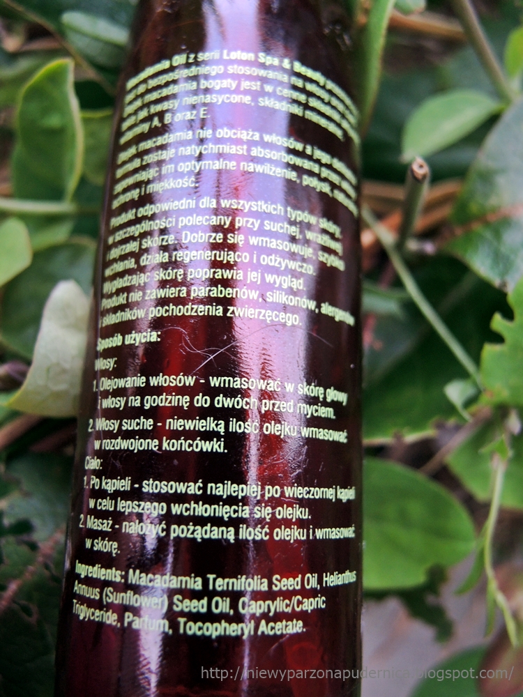 Miałam łobuza, zużyłam z przyjemnością, teraz zwłoki służą jako butelka do oliwki dla dzieci, bo opakowanie rzeczywiście fajne i wygodne 🙂 Na pewno kiedyś do niego wrócę, bo olej makadamia i słonecznikowy dobrze mi służą.-