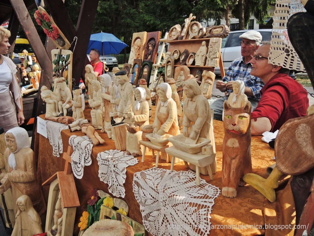 Podczas Chmielaków rozkłada się sporo ciekawych budek z różnościami. Chińszczyznę olewam, bo mam ją online hehe 😀 Ale te ręcznie robione cudeńka przyciągają wzrok. Sama nie kupuję, bo nie lubię gromadzić drobiazgów, ale chętnie oglądam. Uwielbiam zapach świeżo robionych rzeźb. Zapach drewna, miodu…ehhh…cudo! Do tego pachnące wyroby- chleb, wędliny, smalczyk, oscypki- zajadałam się aż mi uszy skakały.