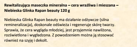 Glinki Rapan są godne uwagi. I maja do wyboru różne pojemności- od malutkich, do których dałam link, do wielkich paczek 🙂 Np te wielkie wory są opisane jako maska na ciało, ale to to samo co w małych pudełeczkach, tyle, że większa ilość 🙂 Także nawet worek na spółkę z koleżankami można brać i się maziać 😉