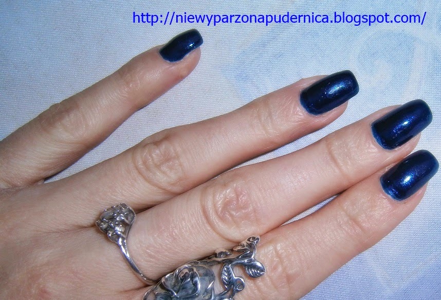 Williamsburg jego imię, a dla mnie to Toń Gwieździstego Nieba. Było mi strasznie trudno uchwycić jego niezwykłość. Głęboki granat z zanurzonymi, mieniącymi drobinkami. Drobinki troszkę jaśniejsze niż lakier, dają trójwymiarowy wygląd. Ciężko sfotografować, ciężko opisać, ale jest piękny.
