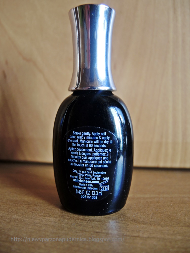 Zacznijmy od Pana Wysuszacza. Geniusz! Dodaje blasku, utwardza, świetnie zabezpiecza i co najważniejsze wysusza ekspresem. Bez jaj! Poprzednie wysuszacze jakie miałam, przyspieszały, bo przyspieszały- ten natomiast daje czadu. Może nie 60 sekund, nie oszukujmy się 😉 Ale po 5 minutach paznokcie są już na tyle suche, że można wykonywać proste czynności. Po około 15-20 minutach świeży lakier zamienia się w totalną skałę! Zero odgnieceń przez poduszkę, jeansy czy inne badziewie. Na pewno kiedy mi się skończy- kupię go. Nie ma bata. Dla mnie rewelka i podjar jak po przebiegnięciu maratonu na własnych nogach. Nie, nie biegam, za leniwa jestem, ale tak to sobie wyobrażam- euforia 😉