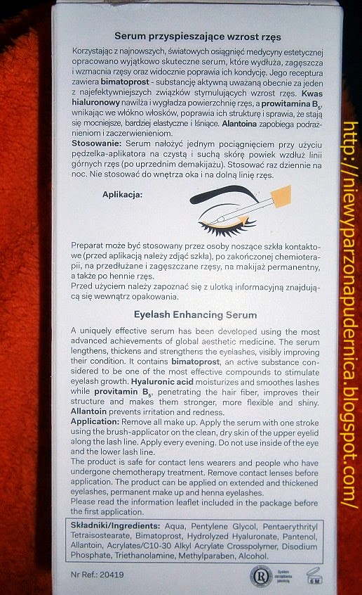 Historia zaczyna się na wieczorze panieńskim… Pomińmy tu alkoholowe harce… Pewna dziewuszka, którą miałam przyjemność poznać podczas tego wieczoru, zachwyciła mnie swoimi wachlarzami nadocznymi. No, to zapytałam, po czym to tak rzęsy jej wyjebało w kosmos. Odpowiedź była krótka. Po tym…Long 4 lashes. Serum przyspieszające wzrost rzęs.Na drugi dzień zaczęłam gmerać w necie. No dobra, dwa dni później, bo drugiego dnia kontynuowaliśmy imprezę 🙂 Jedni straszyli, że bimatoprost w składzie wypali oczy, ześle ślepotę i bolące wrzody. Inni mówili, że dobra odżywka. Sądząc po rzęsach koleżanki- nic nie wskazywało na to, żebym oślepła, jeśli będę stosować zgodnie z instrukcją. Już mnie wkurzają te nagonki, że chemia, że syf, że bleee. Słuchajcie- jeśli coś jest dopuszczone do użytku, to Wam macicy nie przekręci na drugą stronę i nie wypłyną Wam oczy, serio 😀Cena. No, cena nie jest jakaś najmniejsza. W Esesmanie około 80 złotych. Bywają promocje. Ja, jako znana w folwarku sknera, poszukałam w necie i na Allegro znalazłam odżywkę za 52 złote z darmową dostawą. Była to Apteka Rosa (albo coś takiego). Koleżanka znalazła tę odżywkę w osiedlowej aptece, również za około 50 złotych. Myślę, że warto poszperać, bo przepłacać nie ma co.Odżywka to spore pudełko ze wszelkimi instrukcjami. Nie będę kserować, jeśli kupicie to poczytacie więcej, albo możecie pogmerać w internetach. 3 ml to niby nie dużo. Ale ja stosuję regularnie od 3 miesięcy i mam wrażenie, że niewiele jej ubyło. Serio. Wydajne licho.Aplikację mamy na rysunku. Odżywka wygląda jak eyeliner i tak też ją stosujemy. Wystarczy jedno machnięcie na górnej powiece, w okolicach linii rzęs i już. Idziemy spać. Stosujemy na noc, codziennie. Opakowanie wystarcza na 6 miesięcy i jestem skłonna w to uwierzyć. Aplikujemy przez pół roku, a potem dla utrzymania efektu 3-4 razy w tygodniu.A jak odżywka wpływa na rzęsy, mieliście okazję zobaczyć już w moich poprzednich postach. Dziś pokażę Wam wielkie podsumowanie z ostatnich trzech miesięcy. Dwa dni fotki porządkowałam 😀Wrzesień